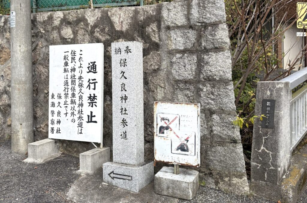 すれ違う方の多くは登山やハイキングの装いで、地域の方にとっては日常的なコースのようです。道中には猪没注意の看板もあり、物音がするたびに少し緊張しながら進みました。それだけに、保久良神社の鳥居が見えたときには、「やっと着いた」とほっとするような達成感がありました。